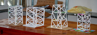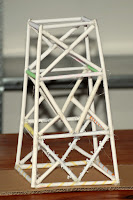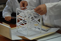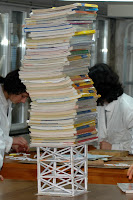 Durante el curso 2009/2010, los alumnos de 2º de la ESO construyeron, en el taller, una torre a base de perfiles de papel.