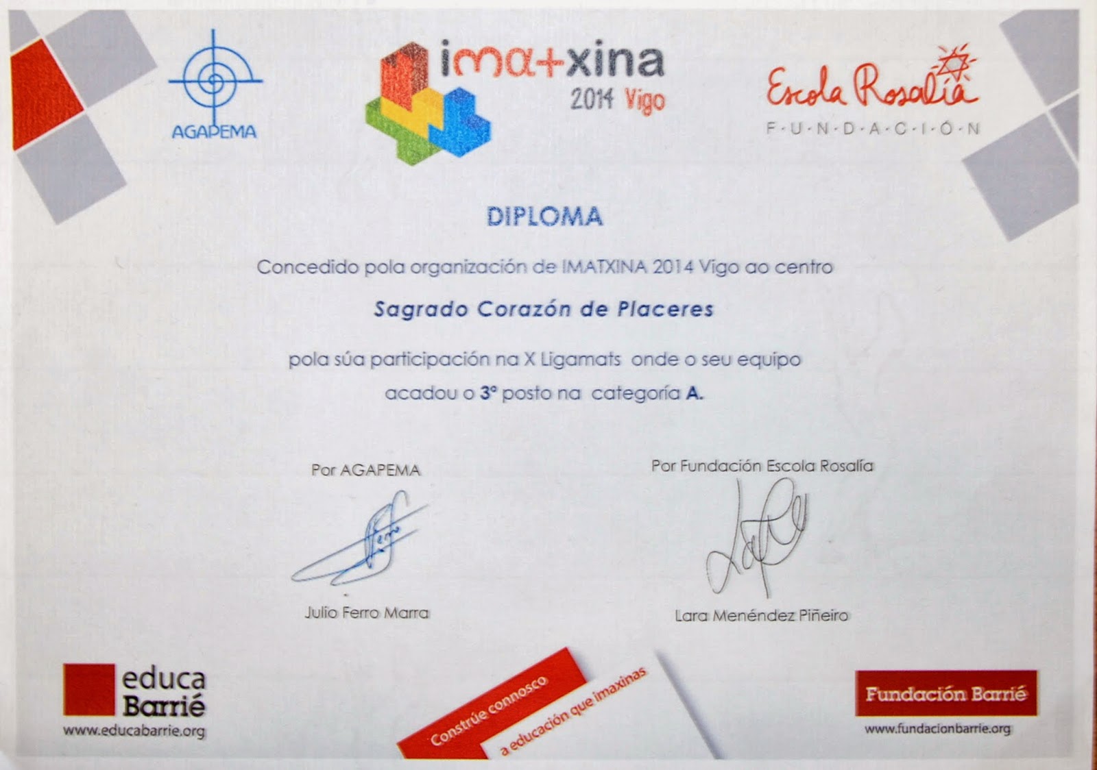Al igual que en años anteriores alumnos de último ciclo de Ed. Primaria y de la ESO han participado en el Concurso Matemático Ligamats, organizado por la Escuela Rosalía de Castro. En dicho concurso, los alumnos de un mismo nivel, trabajando en equipos de 4, debían resolver una serie de problemas, juegos y actividades realacionados con la exposición de Imatxina X Edición.