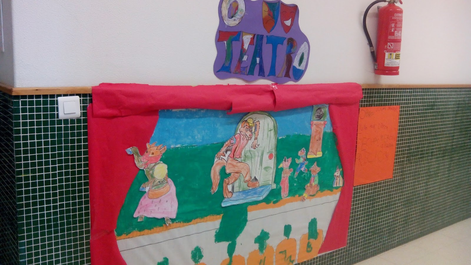 Grazas a toda esta investigación os nenos/as tiveron a idea de facer eles mesmos un pequeno teatro e de pedirlle a Juan (da Aula Verde) que nos axudara na representación.O primeiro que fixeron foi a creación dun mural e cartel publicitario co: