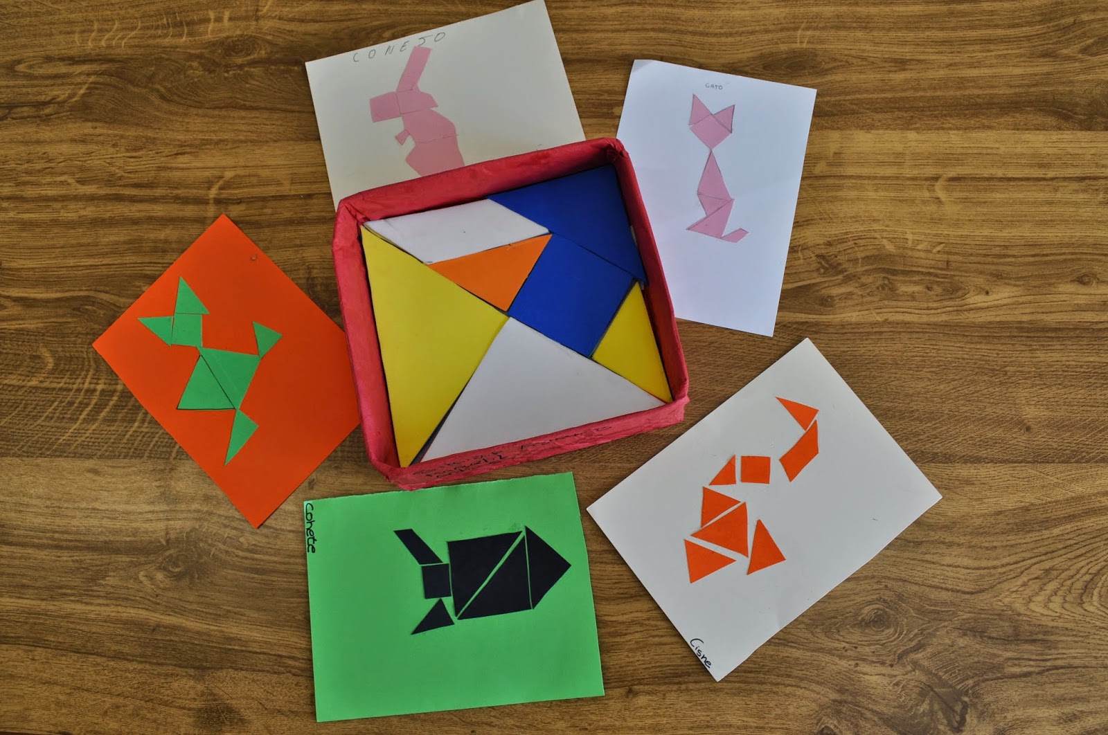Este juego de entretenimiento consistente en formar siluetas de figuras, con las siete piezas dadas sin solaparlas. Los primeros libros sobre el tangram aparecieron en Europa a principios del siglo XIX y presentaban tanto figuras como soluciones. Las 7 piezas, llamadas “Tans”, son : 5 triángulos de diferentes tamaños, 1 cuadrado y 1 paralelogramo romboide.