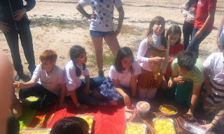 Aprovechamos la ventajosa ubicación del colegio para desplazarnos a la playa y hacer varios juegos, una merienda y entregarnos los detalles por el amigo invisible.