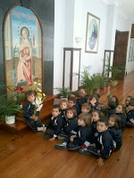 O mes de Maio é o mes das flores e o mes de María. Os pequenos do cole levaron flores á Virxe e o día 13 visitaron a «Virxe da Cova», como eles a chaman (realmente trátase da Virxe de Lourdes). Alí cantaronlle e algúns lle dixeron algunha fraseciña cariñosa.