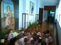 O mes de Maio é o mes das flores e o mes de María. Os pequenos do cole levaron flores á Virxe e o día 13 visitaron a «Virxe da Cova», como eles a chaman (realmente trátase da Virxe de Lourdes). Alí cantaronlle e algúns lle dixeron algunha fraseciña cariñosa.
