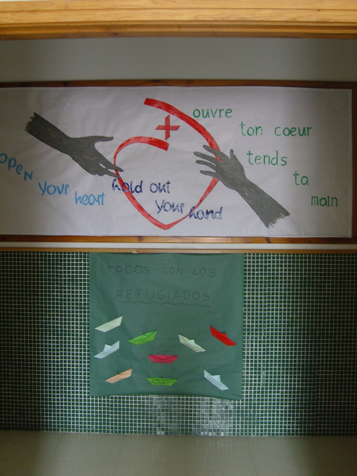 Todos somos conscientes de las dificultades por las que están pasando miles de personas a causa de las guerras. Son muchas las que han tenido que abandonar sus hogares por este y otros motivos, arriesgando incluso sus vidas. Ellas acuden a Europa con la intención de vivir en paz. No han abandonado su tierra porque ya nos les guste, sino porque ya no se puede vivir en ella. Nosotros tenemos de todo, incluso más de lo que necesitamos, por eso desde nuestro colegio hemos querido ser solidarios y unirnos a la petición de muchos europeos de que debemos dejarles entrar y compartir con ellas nuestros recursos. La tierra y nuestro continente en concreto es muy grande. Somos muchos los que queremos ayudarles y, como muestra de ello, los alumnos de 2º ESO A, han realizado como símbolo de la marea que son unos barcos decorados con mensajes en los que les tendemos nuestra mano y comprensión. «Todos con los refugiados».