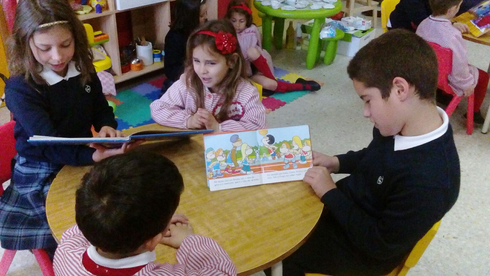Os mais pequenos tiveron a sorte de poder gozar da lectura de contos por parte dos compañeiros de primaria, e recibir un agasallo confeccinado polos mesmos.