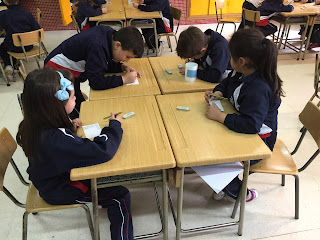Hoy en lengua hemos empezado a trabajar palabras en singular y en plural. Lo hemos hecho con la estructura de aprendizaje cooperativo llamada «1-2-4». Previamente, se les ha dado las pautas y se ha marcado un tiempo para cada parte de la actividad.