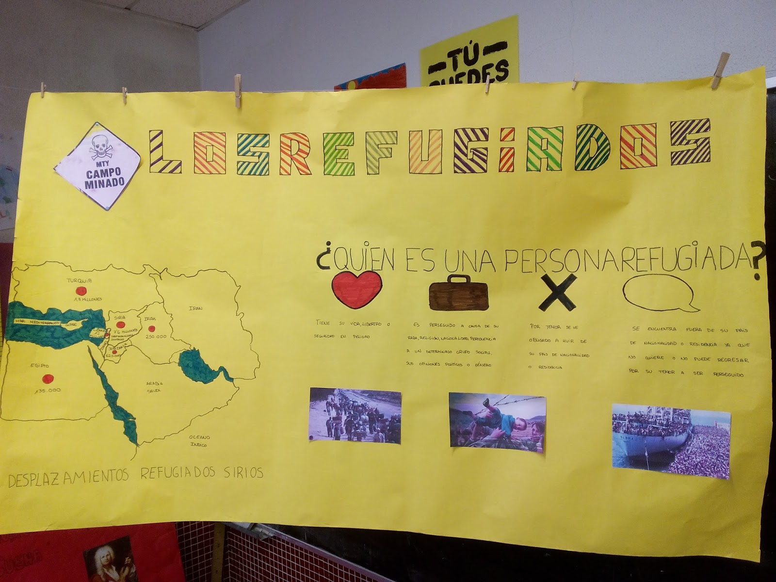 Antes de irnos de vacaciones y como punto final al 2º trimestre, el colegio realizó diferentes proyectos en recuerdo de los refugiados que tratan de entrar en Europa escapando de la guerra y el hambre. Además de estos proyectos también hubo unha charla coloquio con un voluntario recién llegado de Lesbos, la isla griega a la que cada día llegan miles de refugiados. Estas imágenes son el resultado del trabajo, pero lo más importante es nuestra sensibilización con todos aquellos que sufren, especialmente los niños de todo el mundo.