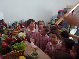 First ESO students have been working on vocabulary about food, drinks etc. As a result here you have the display shown at school as a «Real Stall Market».