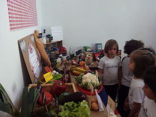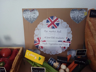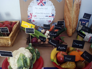 First ESO students have been working on vocabulary about food, drinks etc. As a result here you have the display shown at school as a «Real Stall Market».