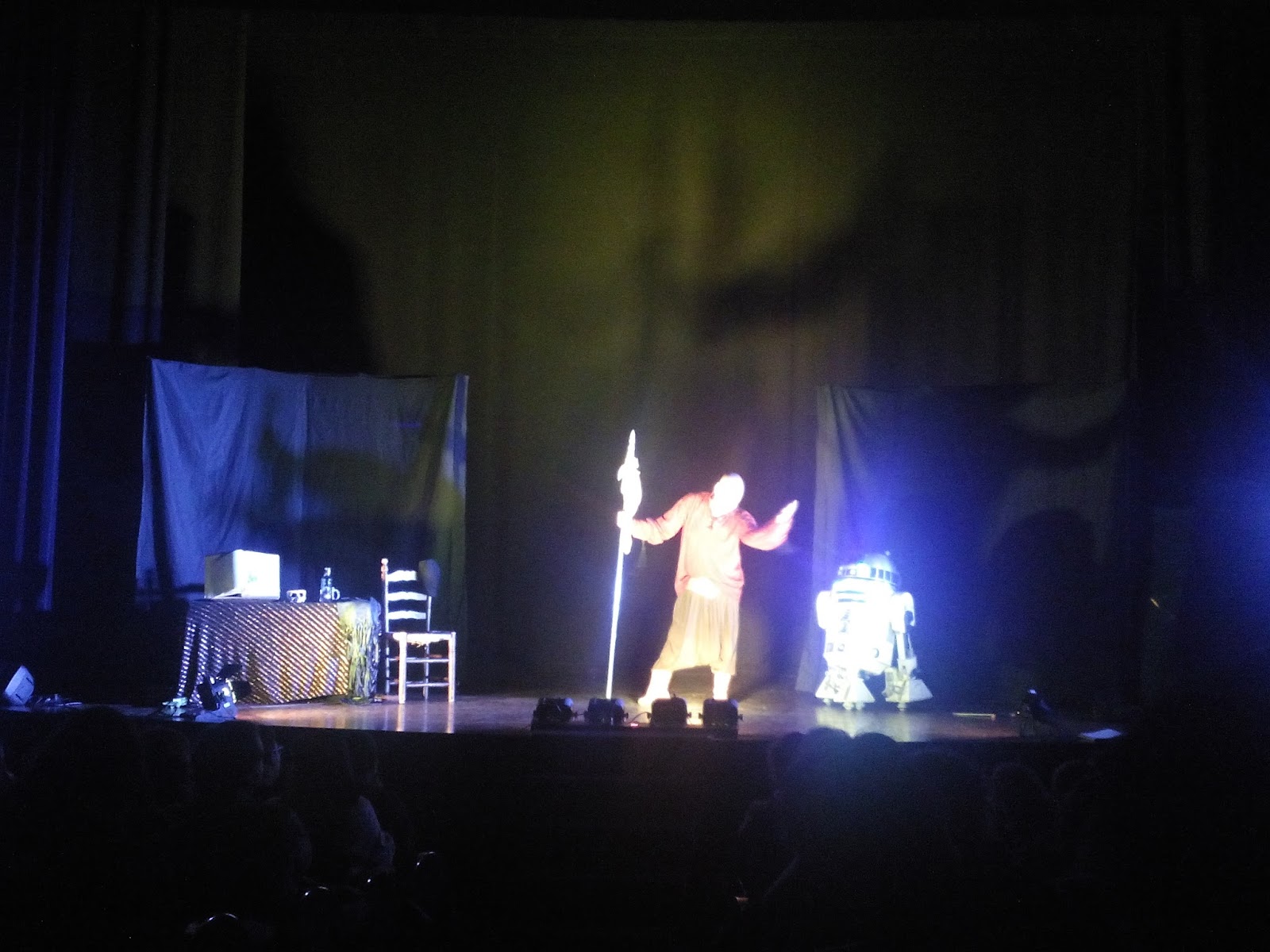 El pasado jueves, día 10, alumn@s de 2º y 3º ESO y de las aulas Verde y Azul, asistimos al Teatro Principal de Pontevedra para disfrutar de una adaptación para jóvenes de la célebre obra de Miguel de Cevantes, «El Quijote», de manos del actor Ricardo Frazer y R2D2.