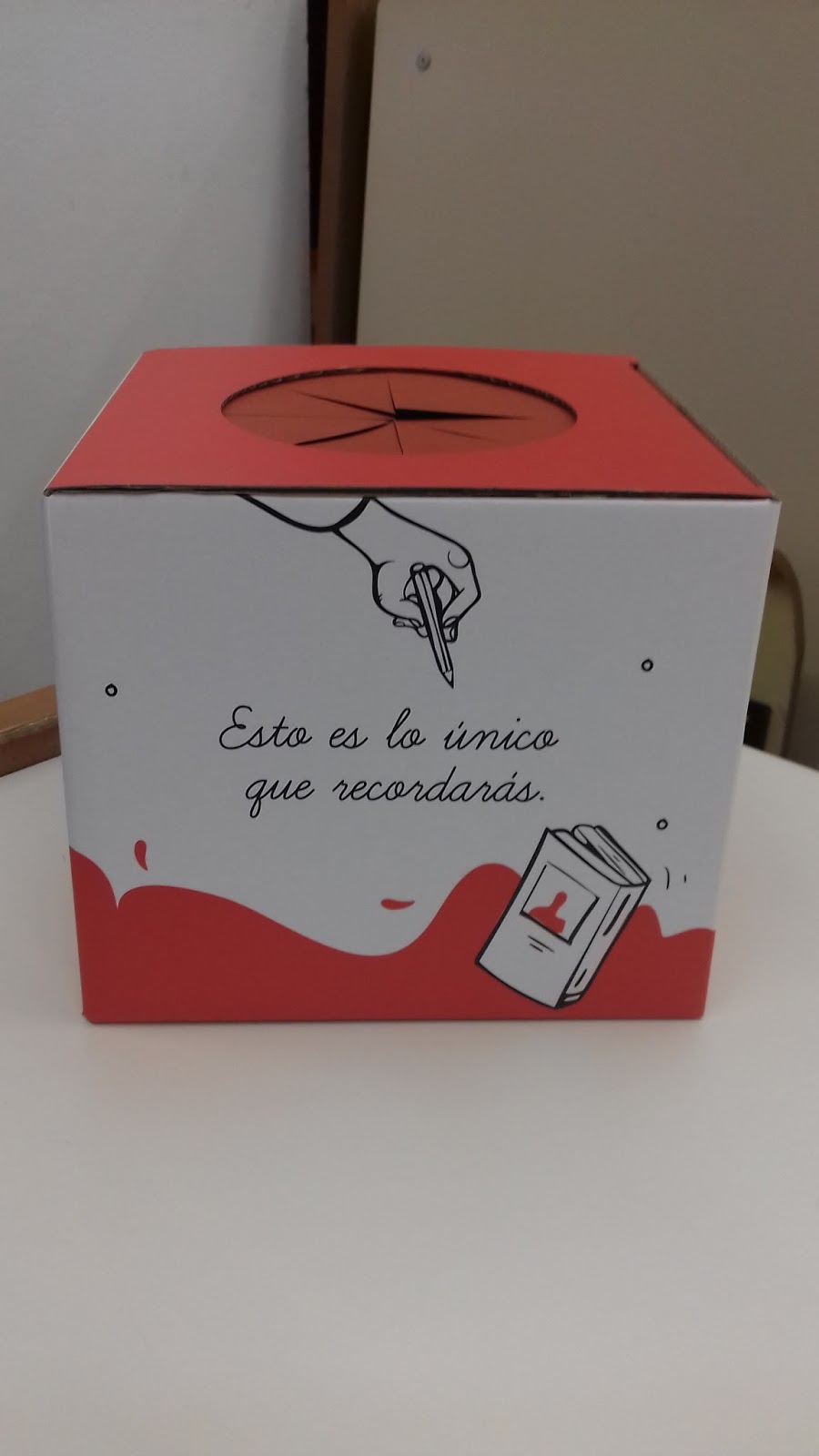 Para elaborar sus relatos, a todos los participantes se les entregó una caja, que tenía impresa la siguiente frase: «Esto es lo único que recordarás» y un agujero en su parte superior, por donde se podía meter la mano y tocar un trozo de césped artificial. A partir de este objeto, debían dejar volar su imaginación y escribir sus textos.