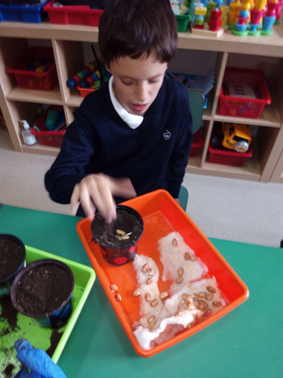 Todas las mañanas al llegar al centro, raudos y veloces, los alumnos del aula Naranja van a ver como crecen las plantas.