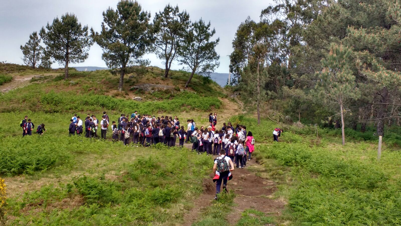 Esta mañana, los alumnos/as de las aulas VerdeAzul, 2º y 3º ESO subimos al  Espazo Natural e Arqueolóxico dos Sete Camiños, comunmente conocido como Monte Pituco.