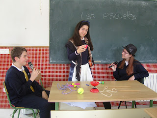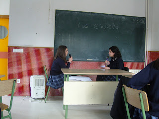 Durante el segundo trimestre nuestros alumnos de 2º ESO jugaron a ser periodistas. Aprovechando la «Semana de la Prensa», prepararon y representaron una entrevista en la que tuvieron que trabajar la evolución de las escuelas en los últimos sesenta años. Entrevistaron a sus abuelos y padres, para saber cómo eran y dónde estaban emplazadas sus escuelas, qué tamaño tenían las aulas y qué tipo de muebles había en ellas, qué libros y materiales utilizaban, a qué jugaban y con qué jugaban y qué diferencias encontraron entre las escuelas de sus antepasados y las suyas.