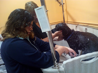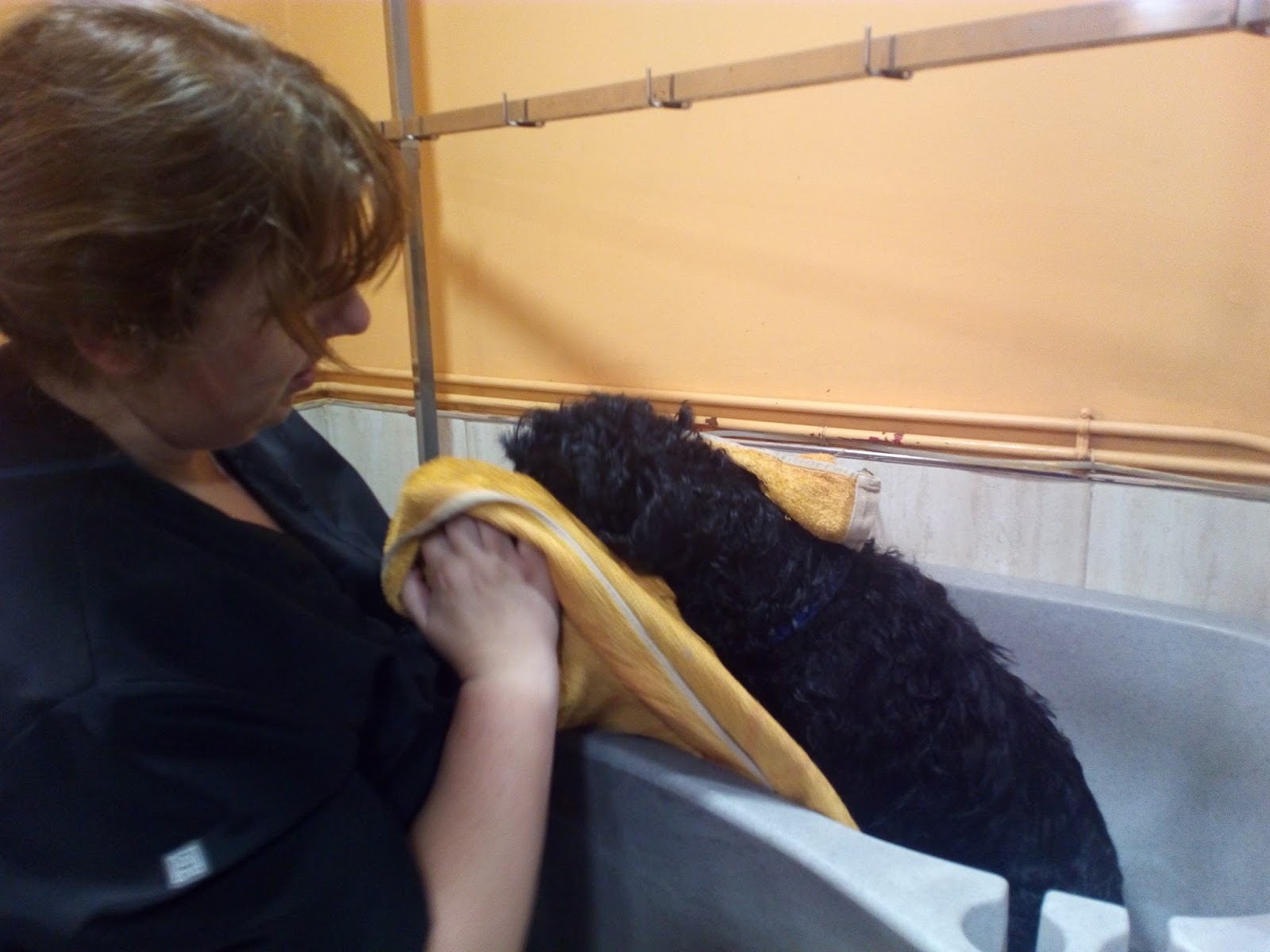 Teresa nos explicó el proceso que íba a seguir en el tratamiento de belleza canina y, gracias a su amabilidad, colaboramos en los diferentes pasos:
