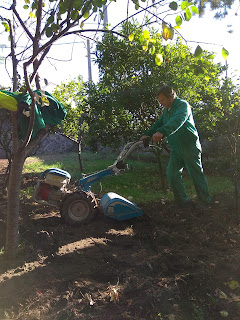 Javi vino a fresar y a ponernos a punto la tierra después de la sequedad de este verano.