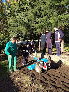 ¡Y lo hizo con sorpresas para nosotros! Nos explicó el manejo del moto-cultor que utiliza cada año y pudimos probar su funcionamiento.