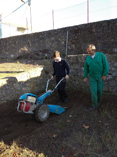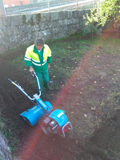 Javi vino a fresar y a ponernos a punto la tierra después de la sequedad de este verano.