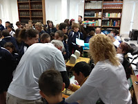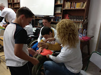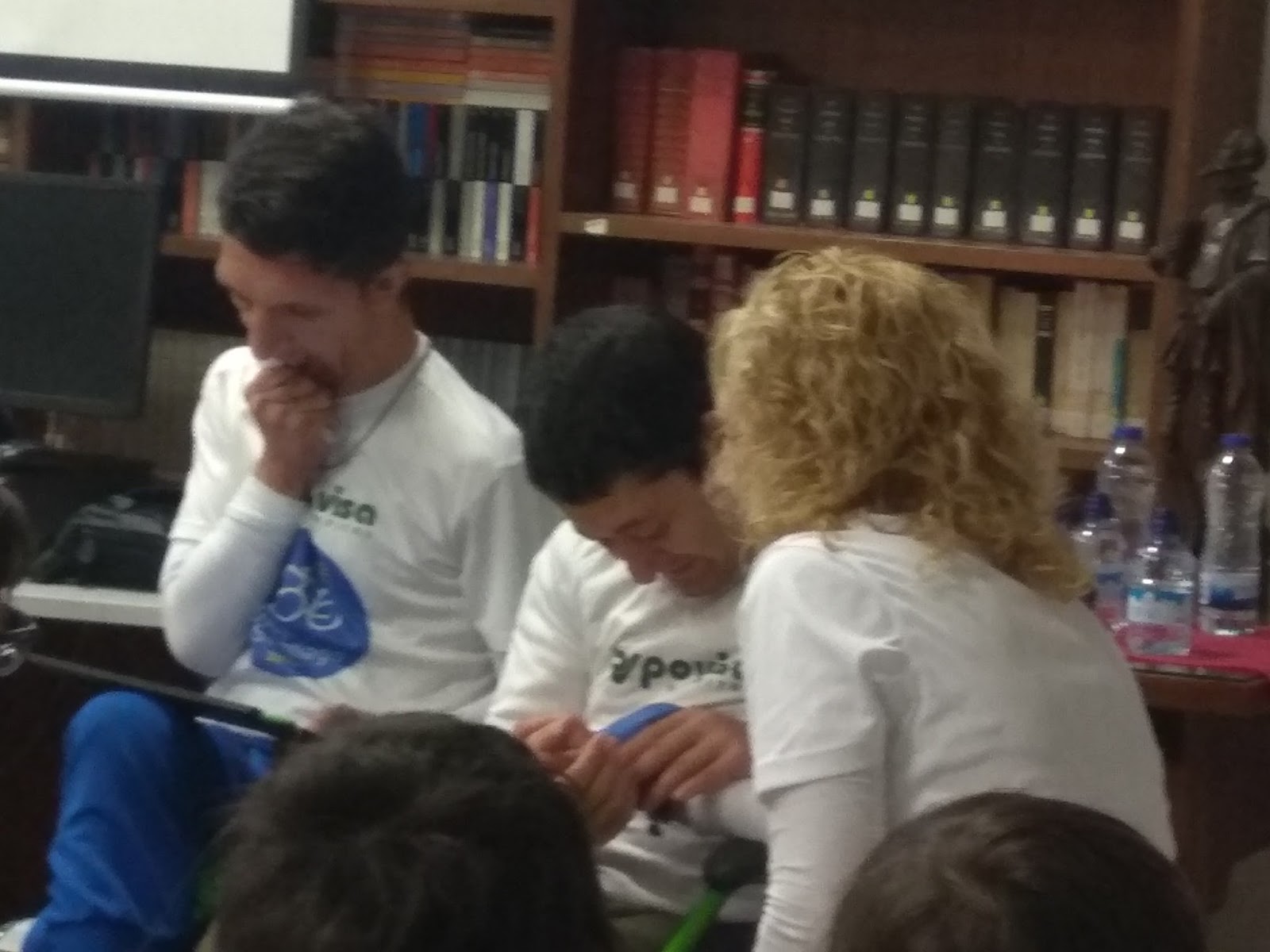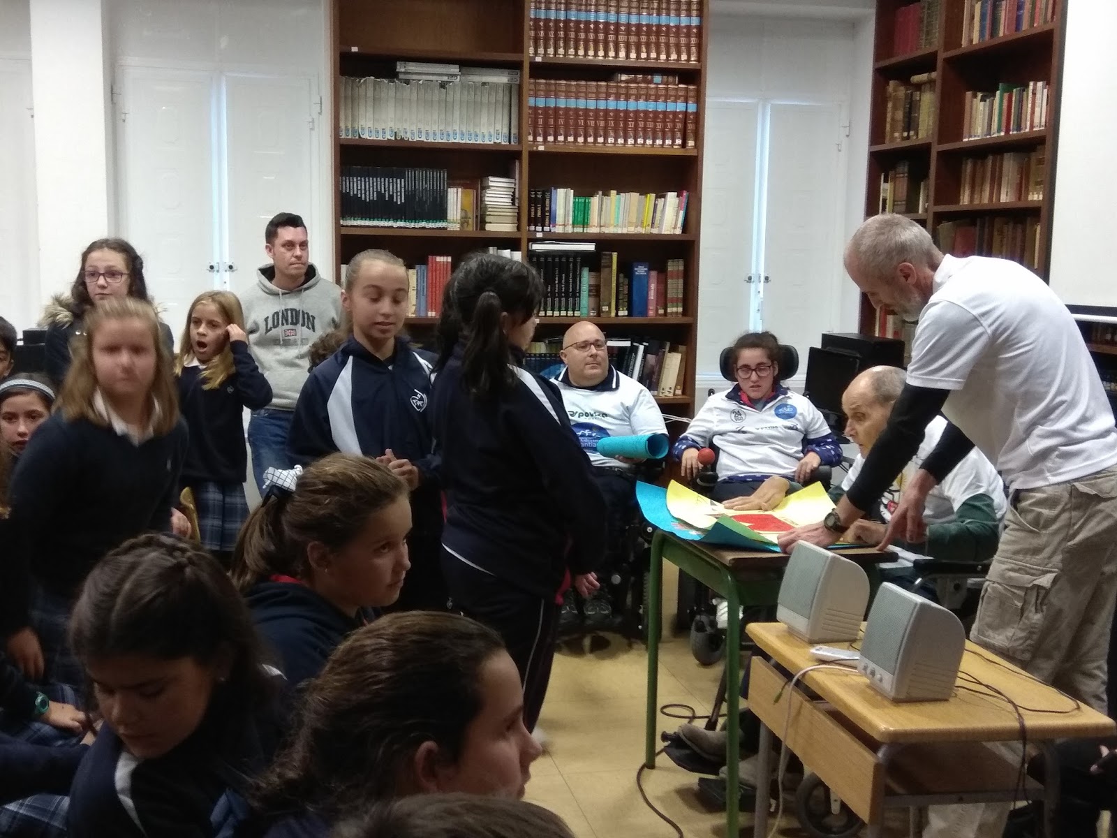 Dejamos a un lado los libros y los lápices para escuchar a seis miembros de la Asociación de Familiares de Personas con Parálisis Cerebral – APAMP: Javier, David, Ana, Fani, Jose, Gerardo, acompañados por Estrella y Javier Pitillas – un voluntario con un corazón enorme y siempre dispuesto a cumplir los sueños de los demás.