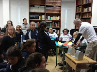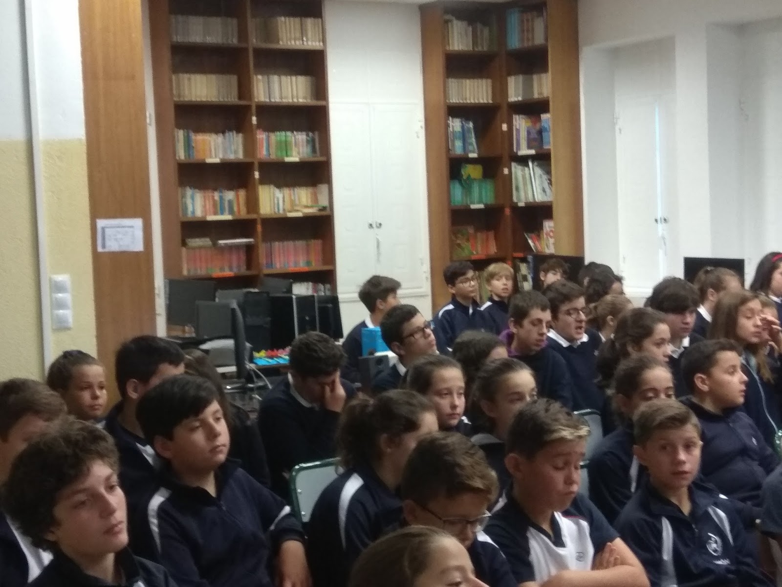 El jueves 8 de noviembre, invitados por los profes y alumnos/as de 5º y 6º de Ed. Primaria, las aulas Verde y Azul asistimos en la biblioteca del colegio a «una charla para la vida».