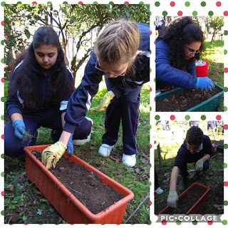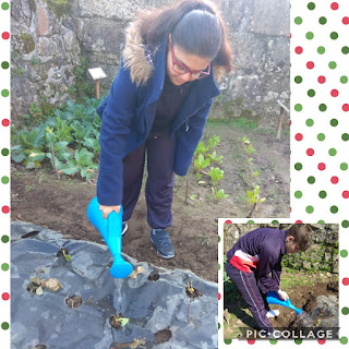 Las últimas tareas que realizamos en el huerto fueron la preparación del terreno y la plantación de fresas, la limpieza de malas hierbas alrededor de los jacintos y narcisos, el semillero de lechugas y la recogida de nabicol.