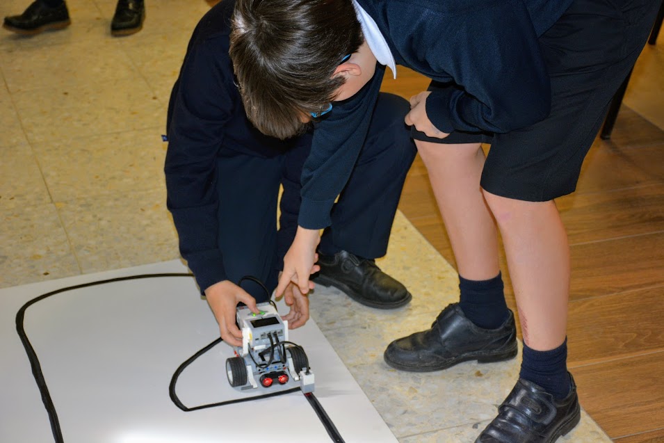- Siguelíneas I: Típico ejercicio de inicio en la programación, en el que el robot debería cubrir de forma autónoma un circuito cerrado marcado en el suelo. En este primer reto de siguelíneas la velocidad del robot podría ser cualquiera que decidiese el grupo. De ese modo se pretendía que conociesen la importancia de ajustar dicha velocidad para minimizar el cabeceo de la máquina construida.