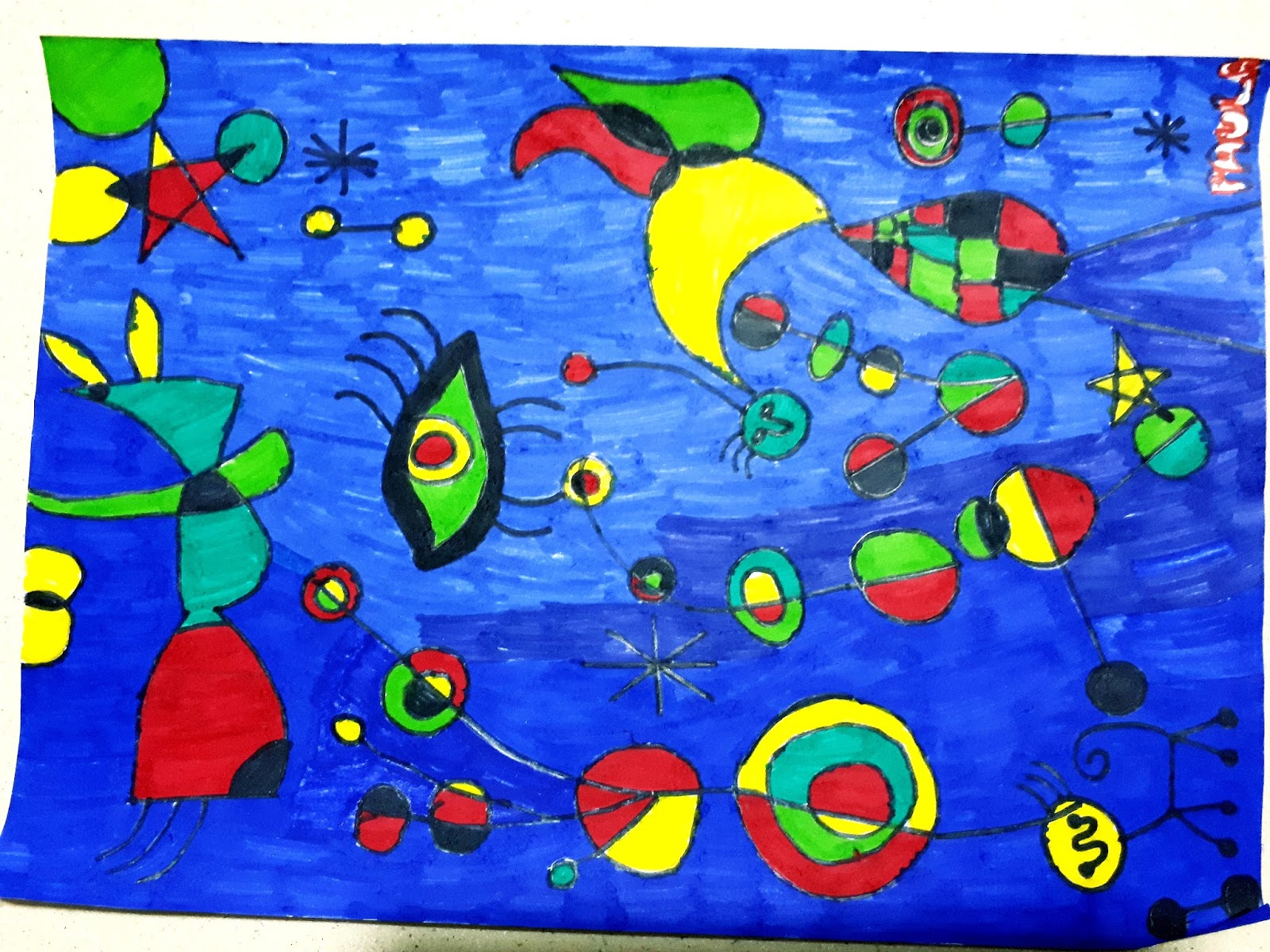 Los alumnos de 3º de Educación Primaria trabajaron, entre otros, la pintura de Joan Miró, uno de los máximos exponentes del surrealismo. Os mostramos el último trabajo realizado por estos verdaderos artistas.